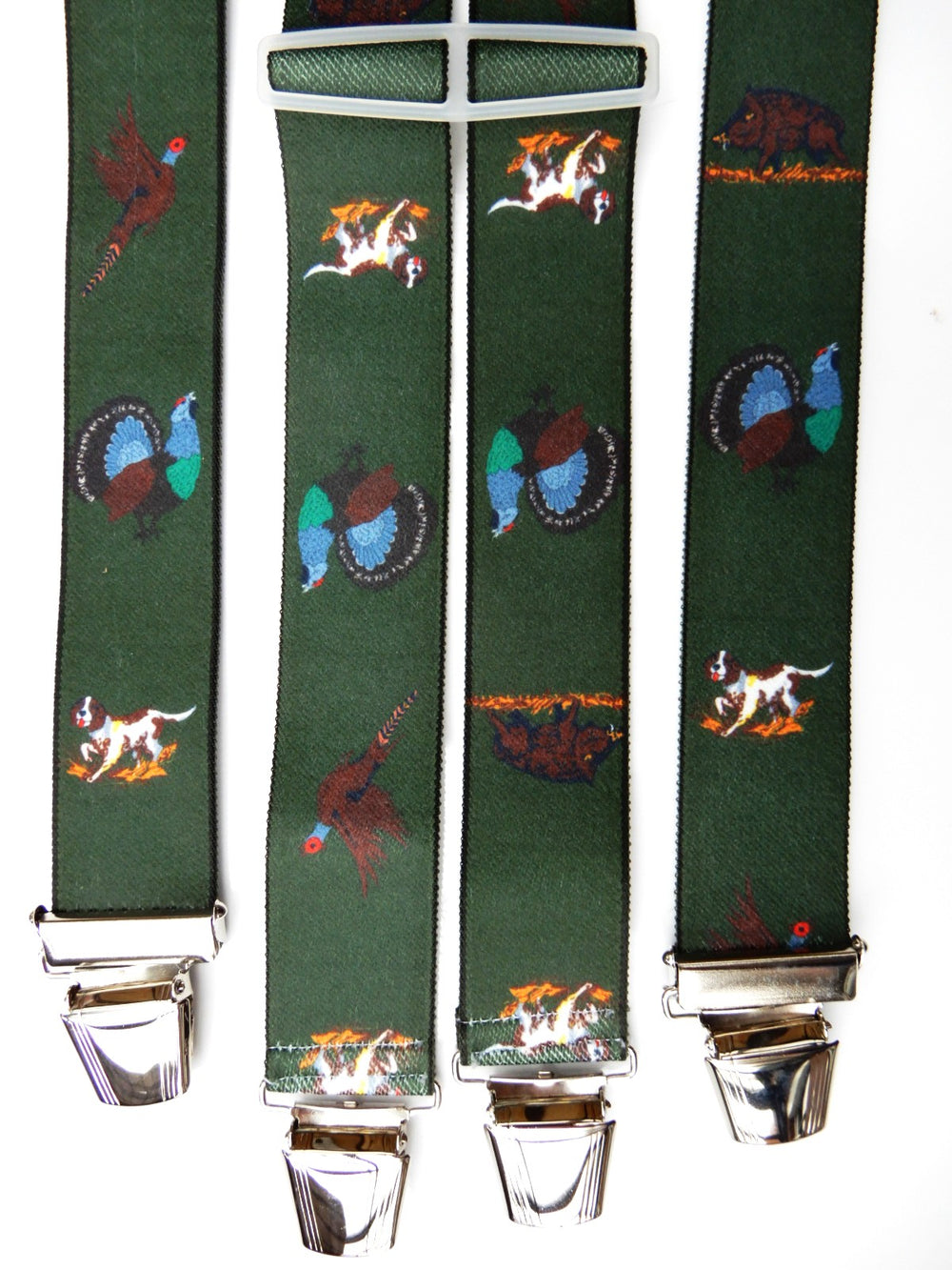 4 Klip Hosenträger mit Vögel Jagdmotiv